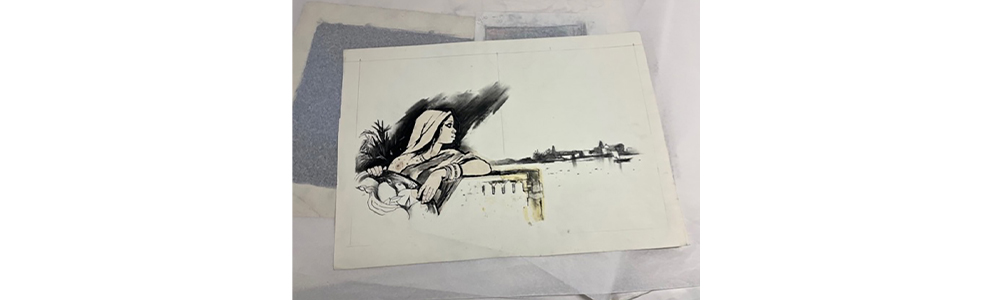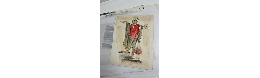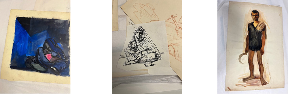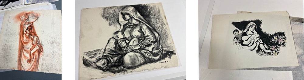 The relief I felt when I opened the second folder was indescribable. I wasn’t thinking critically at first, I was just happy to see drawings of people dressed and living their lives. Women on the backs of scootys, men farming, women sleeping with their small children. Women sleeping with their small children.