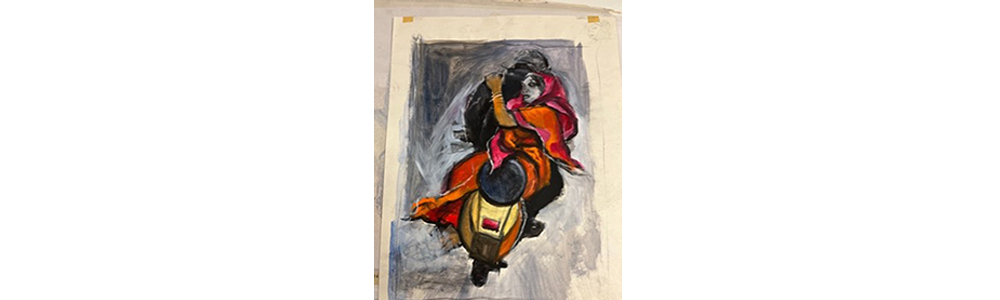 The girl opens the door to find her husband straddling a new scooty. Her intricately patterned hand jumps to her mouth before she can stop herself, her red banga rattling against each other. He gives her a toothy grin as he says “Chalo jaan”. She runs a few paces towards him, before feeling her mother-in-law’s eyes bore into her back. She restrains herself to a walk. Each step feels like an age. By the time she reaches the scooty she is close to bursting. Her mother-in-law is still watching and won’t approve of her sitting “like a man”. She barely manages to remember to sit sideways. She leans forward, mouth to her husband’s ear. Her “Dhanyavaad” is drowned out as the key turns in the ignition.