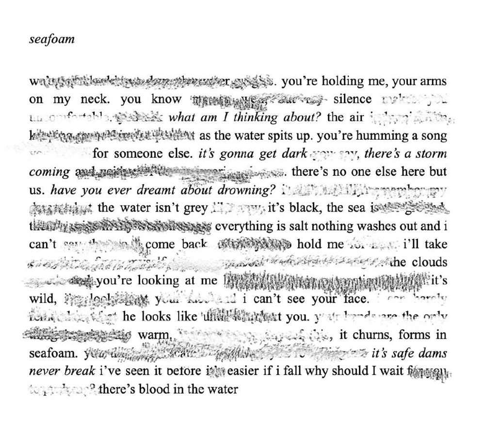 During the Writing the Archive, I was thinking about memory and personal archives. I looked at linoprinted art books and how an image alongside text can tell its own story. I thought about how erasure can add to, or even sometimes create, meaning. In each poem I look at a different way memory can change; from the climate, to mental health, to situationships, to uncertainty. For the image based panels I used words to distort and create meaning and played with colour.